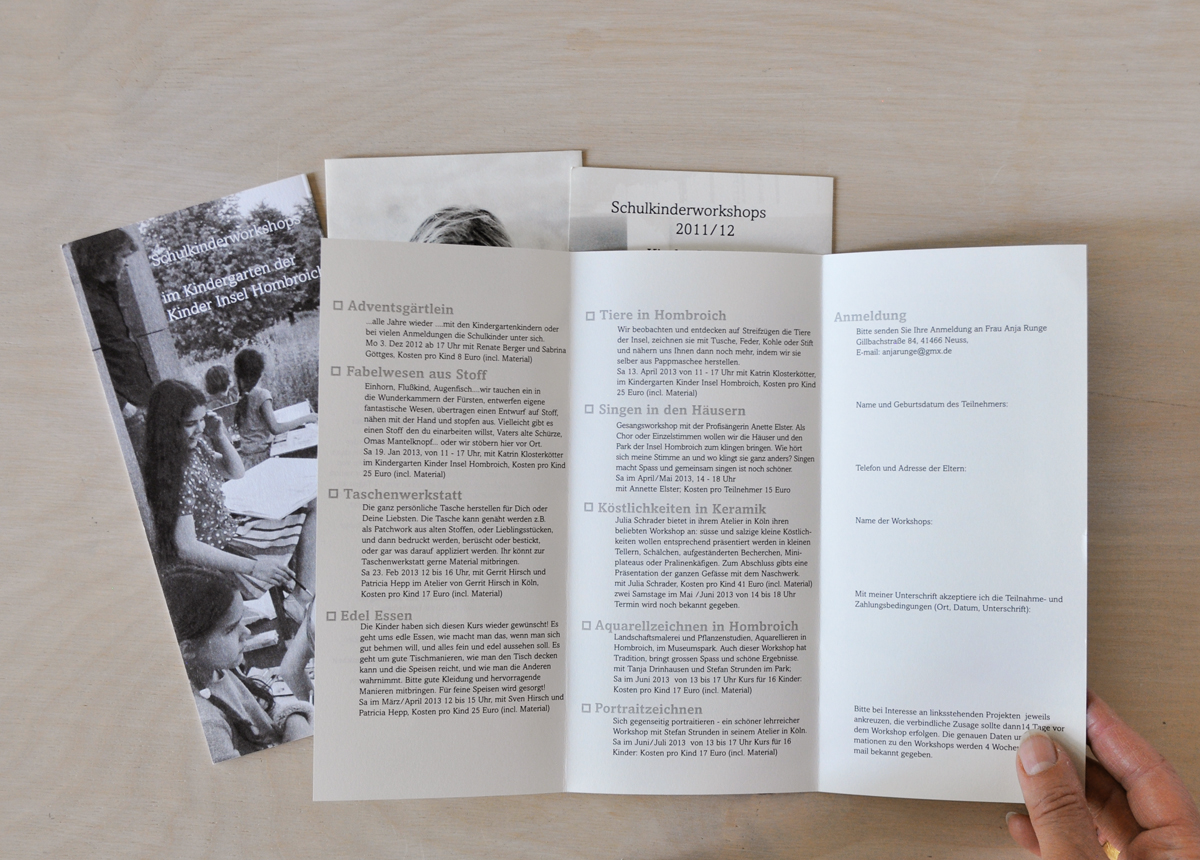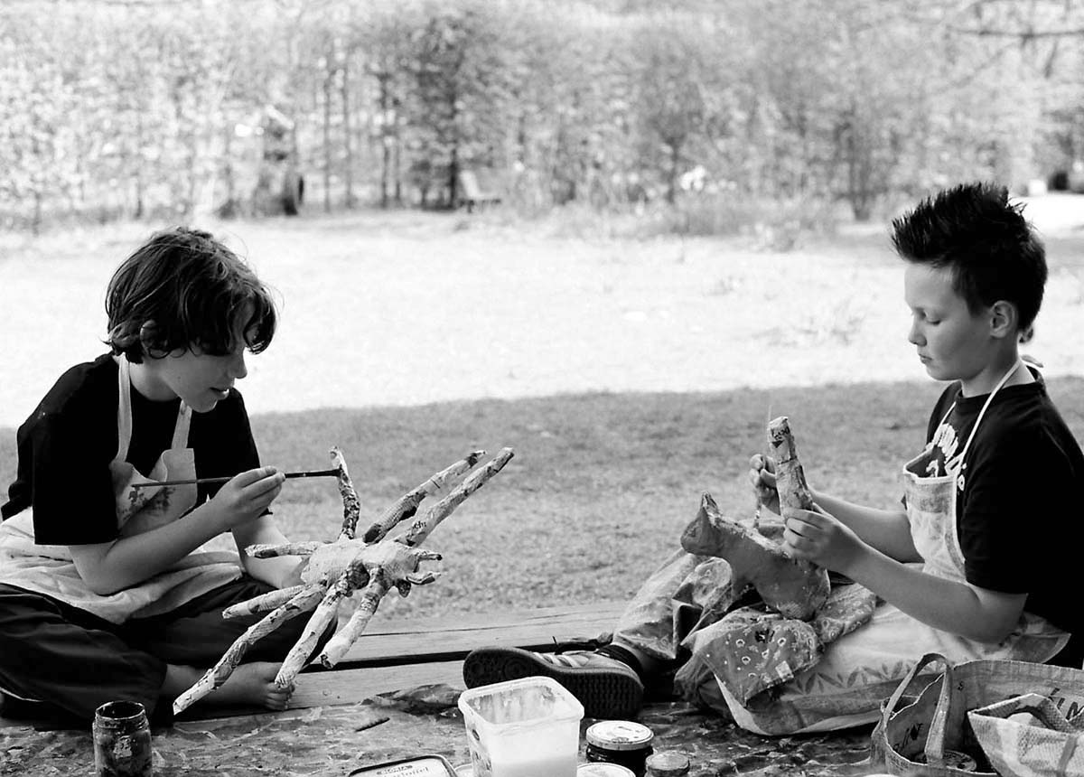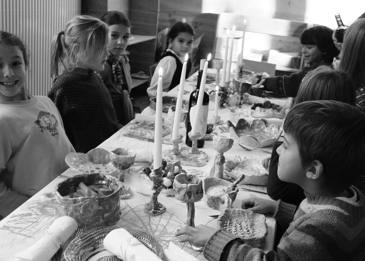 The desire to continue the musical support of the children leaving the kindergarten led to the creation of a series of workshops for older children. Every year, a program offers different artistic, musical, handicraft and cultural workshops in the kindergarten and in artists' studios on weekends. This series of workshops has existed since 1998.