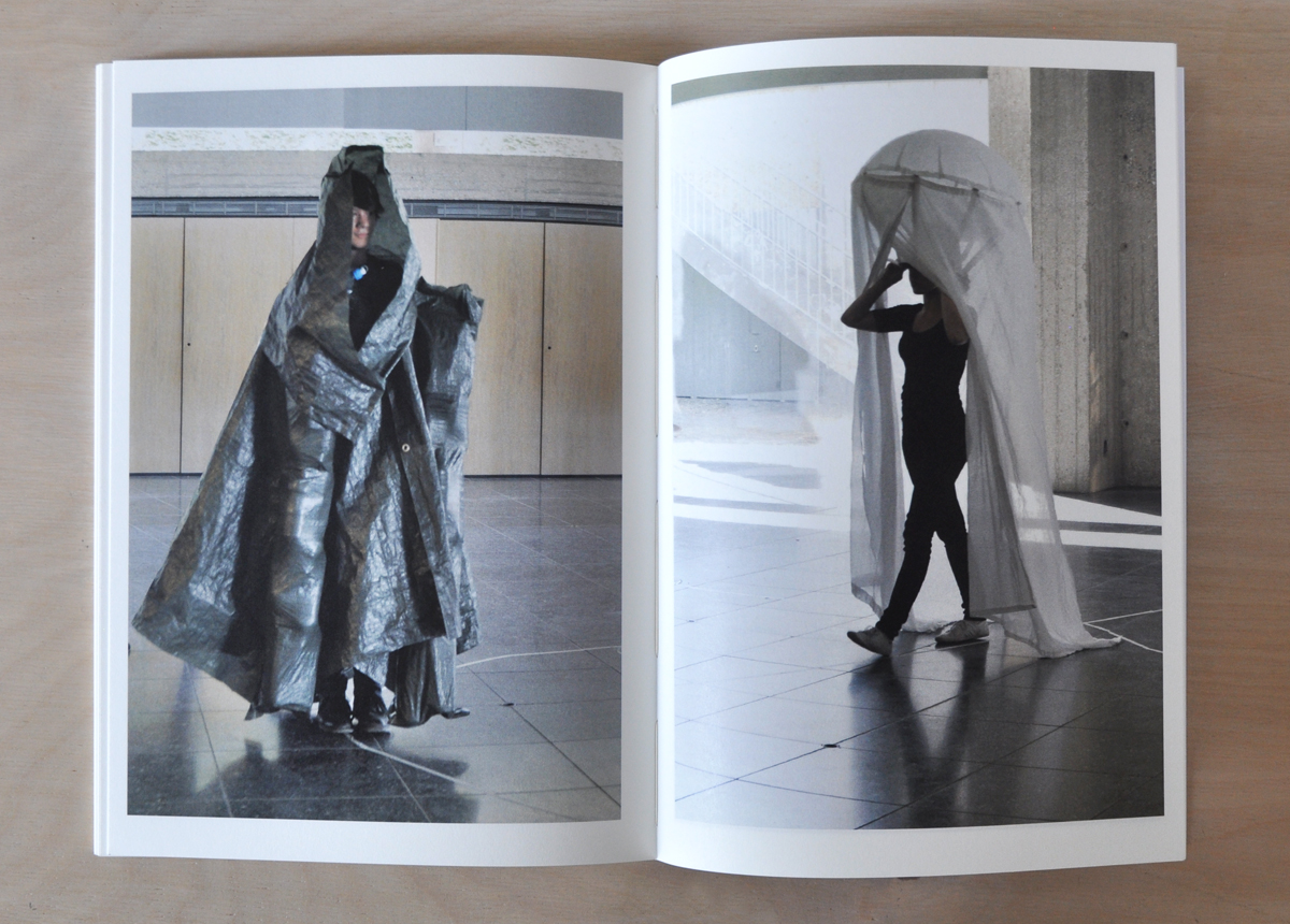 „Camouflage – covering the objects to make them disappear“ An investigation about camouflage in relation to our body coverings. „Camouflage“ is sought, as an inversion of the representative aspect of our textile or architectural facades. How can the body become anonymous, disappear, no longer be perceived in its environment?