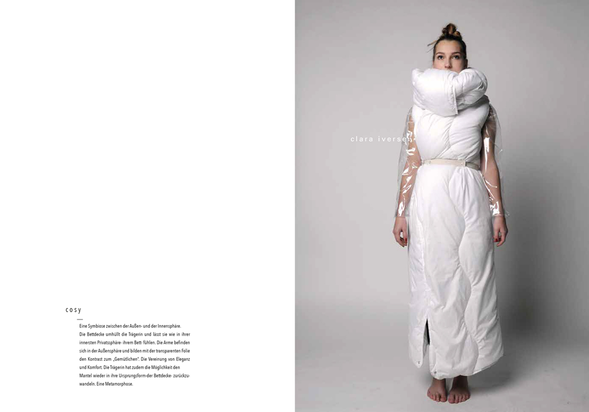 Clara designed a duvet cover with the title "cosy". Wrapped in the feel-good world of the duvet, the coat plays with the transition between two spheres of life, that of sleeping and that of daytime activities.