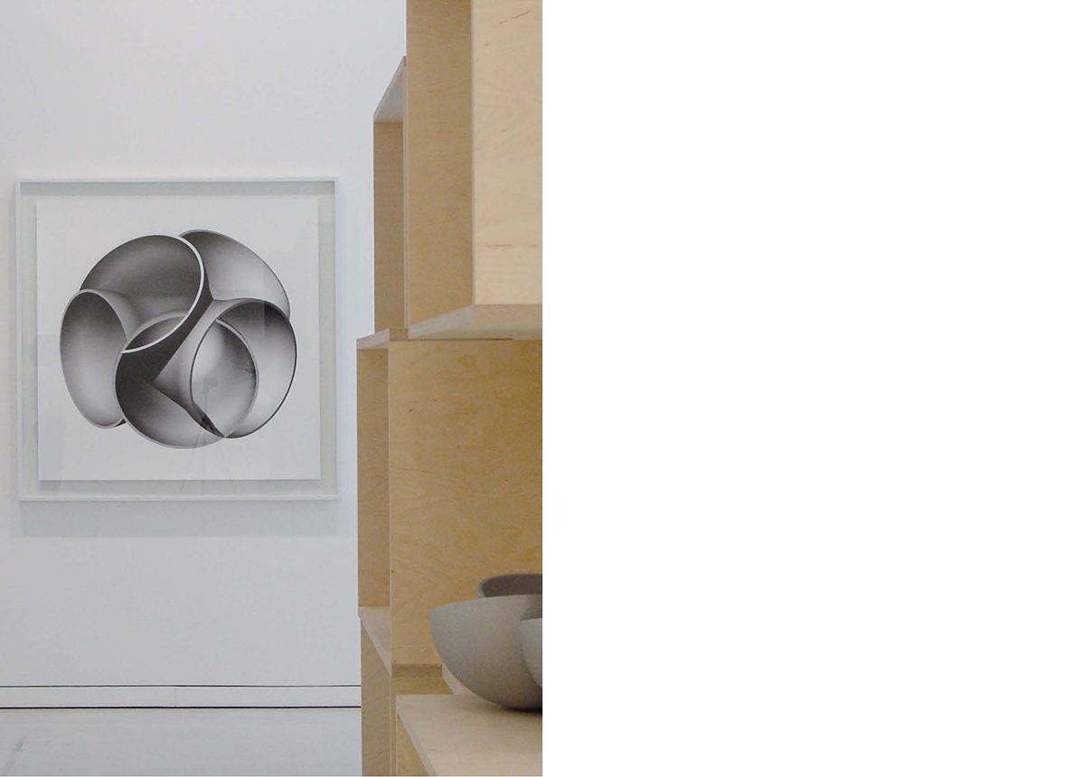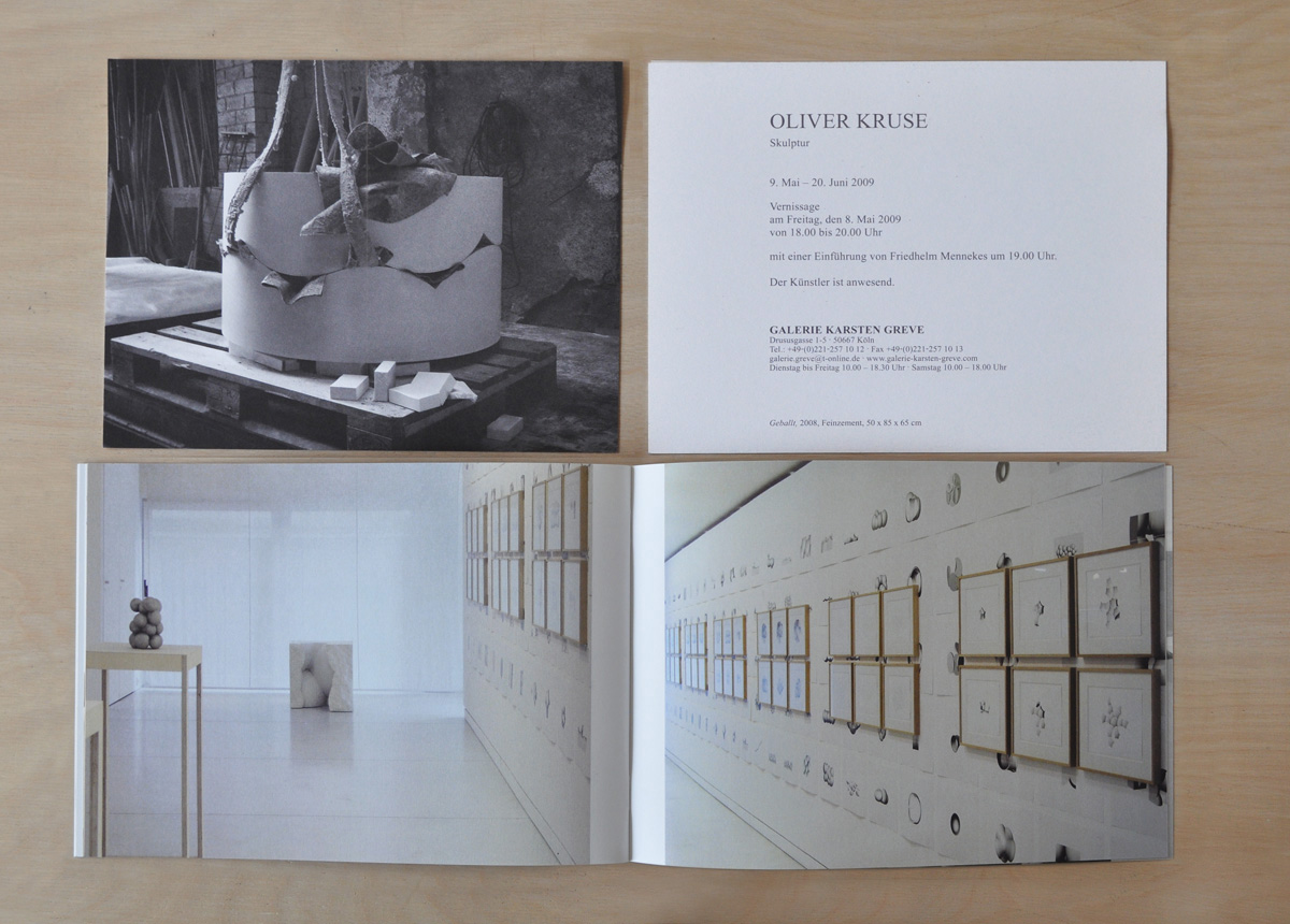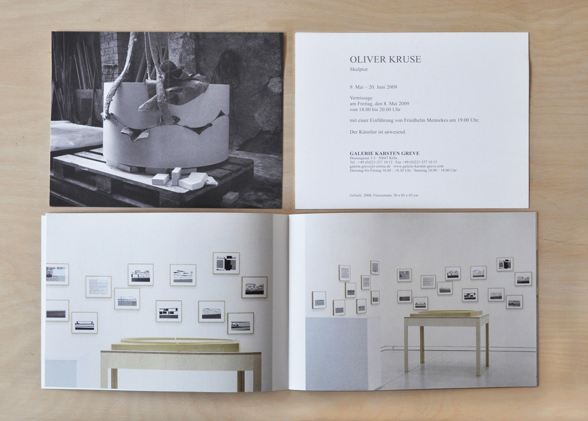 Since 1995 I have been working for and in cooperation with Oliver Kruse on the communicative means of his artistic work, as well as on his exhibitions and artist books. The solo exhibition "Oliver Kruse - Sculpture" in the Gallery Greve in Cologne showed besides the sculptural works many works on paper. The works on paper are not a preliminary stage, no planning sketches to the sculptures, but to be seen parallel, another manifestation of the virtual constructions. The rhythmic and in layers spatially constructed hanging of these sheets can be perceived as a whole.