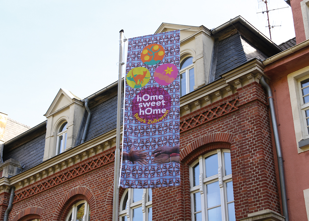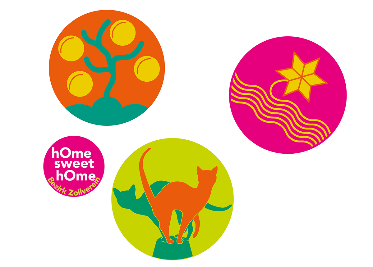 Just as we created the Emblem for Katernberg, which is an adaption of the local fountain, so we developed a logo for Schonnebeck and Stoppenberg. These emblems were stenciled on textile bags and, in connection with hOme sweet hOme, could be worn as a personal flag to represent the borough.